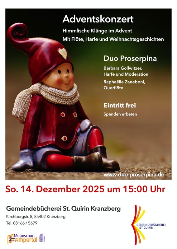 Sa. 16.12.2023 - Adventskonzert mit Lesung, “Clara-Schumann-Saal” Musikschule Gilching (Sprecher; Tilman Pflock)